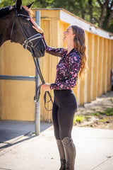 This season sleek black meets contemporary floral in our modern begonia printed long sleeve ¼ zip. Long sleeves, breathable power mesh, 1/4 zip, UPF 30 and soft 4-way stretch fabric in a contemporary fit.